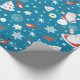 Papier d'emballage à thème de Noël. Santas, arbres, flocons et perdrix. * Carte de note correspondante disponible.