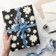 Ce beau papier d'emballage personnalisé présente un motif marguerrier mignon de couleur arrière - plan noire, parfait pour la fête des mères ou toute autre occasion.