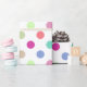 Vous adorerez les grands pois pastel qui remplissent ce papier d’emballage ! Un mélange de menthe, de fuschia et de corail égaye tout cadeau.