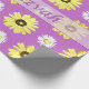 Ce papier d'emballage de lustre de photo a les marguerites blanches et jaunes sur un arrière - plan rayonnant d'orchidée et une rayure semi-transparente avec l'expression : "Bat mitzvah." Ce document de cadeau est un article élégant pour envelopper vos cadeaux, aussi bien qu'un présent gentil en soi à quelqu'un spécial. Vous pouvez également l'assortir avec des cartes, des autocollants et des timbres d'Artcor7Cards ou une série de cadeaux d'Artcor7 chez Zazzle.