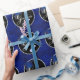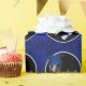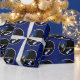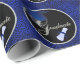 La typographie argentée "Graduate" est jumelée à un poster de animal amusant en guépard bleu pour un thème sauvage à vos cadeaux de remise de diplômes, avec un cercle noir taillé blanc qui tient le mot art, un chapeau royal bleu de graduation et un diplôme.