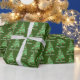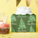 Joyeux sapin abstrait moderne de Noël avec des boules de pattes d'animal vert sur du papier vert foncé. Décor de vacances papier rouge avec arbre rouge, vert et blanc. Un bon sentiment de Noël en dessous de l'arbre peut être changé en n'importe quel texte que vous voulez.