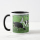 Vaches laitières néerlandaises de Frisian dans un pré vert une belle journée de printemps en mai avec le texte personnel indiquant "MOO-oo". Entièrement personnalisable ! Changez le texte si vous voulez à votre propre nom. Ajoutez plus de texte et d'images si vous voulez ! Passez commande en ligne et customisez la taille et les couleurs si vous voulez ! Grand cadeau, ordre maintenant commodément et rapide de tasse de lait de vache votre propre tasse personnelle de boissons chez www.zazzle.com/hollandshop !