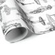 Dessins d'avion noir et gris, superposés et sous divers angles, sur un arrière - plan blanc. Un papier d'emballage cadeau parfait pour la Fête des pères, ou d'autres occasions spéciales.