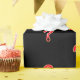 Point de question rouge sur papier d'emballage noir Faites-leur deviner. Amuse-toi bien !