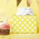 Cadeau Point Polka blanc sur papier à envelopper jaune