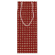 Gros arc blanc, sac à vin de Noël. Grand sac cadeau en rouge foncé avec un motif d'étoiles scintillantes. Un seul arc blanc, doré, orne l'avant.
