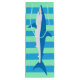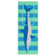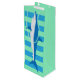 Un sac de vin "requin" laqué rayé dans les couleurs attrayantes des eaux caribéennes, prêt à introduire une bouteille. L'illustration du requin Mako est de dagdart.
