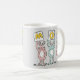 Fun Mug pour maman. Fun Rabbit Design Pink and White Mug avec l'illustration de Rabbits en rose et bleu. Les lapins tiennent des cartes pour épeler le mot MOM. Mug cadeau de la fête des mères avec de mignons lapins bébés.