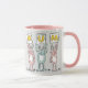 Fun Mug pour maman. Fun Rabbit Design Pink and White Mug avec l'illustration de Rabbits en rose et bleu. Les lapins tiennent des cartes pour épeler le mot MUM.