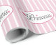 Ce papier d'emballage comporte la princesse de mot avec les coeurs roses et l'ensemble sur un arrière - plan rayé rose et blanc.