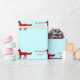 Que dit le Fox, renard rouge sur papier bleu avec des mots venant de sa bouche.
