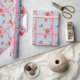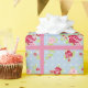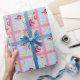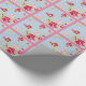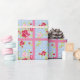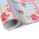 Un joli papier d'emballage avec des roses sur le bleu avec des pois blancs et un arrière - plan rose assorti.