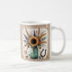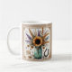 Cette charmante tasse est ornée d'un arrière - plan beige rustique avec un bocal en mason rempli de tournesols jaune vif et d'un fer à cheval occidental classique. Parfait pour votre café du matin ou comme un cadeau réfléchi pour tout ami amoureux de la campagne!
