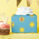 Ce design Suns in Shades est ce dont les rêves d'été sont faits. Les soleils jaunes et oranges, colorés sur un dégradé, sont espacés uniformément d'un beau ciel bleu. Certains des soleils portent des lunettes de soleil rouges, bleues-violettes ou vertes. Nous sommes particulièrement sensibles aux soleils avec des lunettes de soleil ; ils peuvent avoir l’air cool mais ils prennent soin de leurs yeux. Ce design gai est particulièrement bon pour célébrer les anniversaires des enfants.