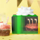 Une photo de closeup d'un gâteau d'anniversaire avec un cadre vert ajouté C'est sur une table. Dans Sterling Kansas USA.C'est lumineux et coloré.
