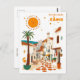 This postcard from Cadiz, Spain is a gorgeous piece of art. It features a beautiful Mediterranean old city with white houses, a cobblestone street, a palm tree, and a big sun. It's a perfect greeting card for Càdiz residents, visitors, tourists, or fans.
