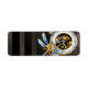 Cadran d'antiquités avec or et lances en laiton, décoré de libellules mécaniques sur arrière - plan brun rayé. Steampunk.