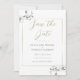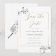 Des branches d'orchidées blanches, dessinées à la main au crayon graphite, ornent cette simple mais sophistiquée, élégante et chic carte de save the date de mariage qui présente un cadre doré délicat. La touche d'or dans la couleur de l'écriture donne à ceci une touche festive mais discrète de couleur.