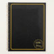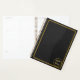 Cuir noir avec un cadre en or simple fait un beau et élégant planificateur qui est parfait pour le bureau, à l'école, ou à la maison. Un petit cercle sur le devant tient votre monogramme.