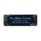 Design festif et rustique de vacances avec texte blanc entouré d'une bordure florale rouge, vert et blanc sur un arrière - plan de la marine.