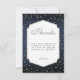 Un modèle de remerciement simple, moderne, élégant et chic pour un anniversaire ou tout autre événement, présentant un fond en denim, le mot MERCI orné de strass (simulés, pas de vraies pierres) et en écriture calligraphique moderne, ainsi qu'une typographie en blanc, ainsi qu'un cadre élégant avec une bordure de strass. Un design chic "denim et diamants" pour une femme de tout âge, pour son 21e, 30e, 35e, 40e, 50e, 55e, 60e, 65e, 70e, 80e ou 90e anniversaire. pour un enterrement de vie de jeune fille, une baby shower, etc.!