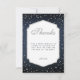 Un modèle de remerciement simple, moderne, élégant et chic pour un anniversaire ou tout autre événement, avec un fond en denim, le mot MERCI orné de strass (simulés, pas de vraies pierres) et en écriture calligraphique moderne, ainsi qu'une typographie en blanc et un cadre élégant avec une bordure de strass. Un design chic "denim et diamants" pour une femme de tout âge, pour son 21e, 30e, 35e, 40e, 50e, 55e, 60e, 65e, 70e, 80e ou 90e anniversaire, pour une fête de mariage, une baby shower, etc.!