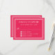 Cette carte RSVP de mariage rose corail chaud audacieux s'affiche avec style et ajoute de l'excitation pour vos invités invités, car ils anticipent votre grand jour. En plus des couleurs audacieuses, un cadre simple et élégant à trois bordures blanches entoure le design de style classique. Le texte blanc d'une face de type contemporain transporte votre message dans un beau contraste avec la couleur arrière - plan audacieuse. Personnalisez le modèle de texte facile à utiliser avec la date de réponse RSVP requise.