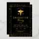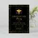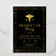 Gold caduceus Class Of 2026 black formal graduation gold foil invitation with confetti borders. Honor the achievements of the Class of 2026 medical school graduate with these elegantly crafted real gold foil on black invitations. Adorned with a gold caduceus, a well-known emblem of the medical profession, these invitations clearly represent the graduate's area of expertise. The design is enhanced by delicate gold borders with confetti that meet at the corners, adding a refined touch. Utilize this invitation to formally gather family and friends to celebrate this important milestone, reflecting the graduate's dedication through this exquisite and fitting design.