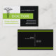 Caduceus doctor modern minimalist black, white, greenfeminine business card featuring a black caduceus doctor sign on ehite and black background and the text “DOCTOR” in a lime green band. Perfect eye-catching professional medical business card design for doctors.