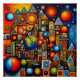 A.I. created meaningless geometrical celestial abstract composition of planets, stars, lines, shapes and colors in an arrangement which pleased the senses of the artist.