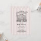 Cute whimsical hand drawn 'Cafe Bebe' French cafe inspired baby shower invite with a soft rose striped background and a hand drawn illustration of a cafe in Paris.