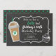 Vous êtes sûr d'avoir un plaisir latte avec cette invitation amusante café anniversaire fête! Il est doté d'une boisson latte congelée moderne avec arrière - plan en tableau noir et texte décoratif.