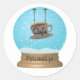 This snow globe features a hanging, rustic, wooden cafe sign shaped like a cup of coffee. It is done in colours of blue, brown and white and ready for you to personalize.