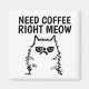 Besoin de café juste miow. Aimant frigo carré. Cranky cat de l'artiste S.G. Fun aimant!
