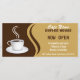 Mug de café © Sunny Mars Designs. Cette carte à crémaillère horizontale personnalisée, entièrement personnalisable, présente l'illustration d'une tasse de café noir vapeur, dans une tasse de café ou une tasse de café en porcelaine blanche, contre un arrière - plan brun et beige. Personnalisez-le en y ajoutant votre propre nom d'entreprise, votre texte et vos informations. Pour la personnaliser, vous devez cliquer sur le bouton "customiser".