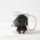 Une tasse potable orientée de teckel, idéales pour le propriétaire de teckel ou pour les personnes qui adorent juste des teckels ! Les caractéristiques de conception de tasses deux ont peint des tableaux des chiots mignons de teckel avec café des textes du "Mmm… !".