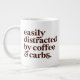 Il s'agit d'une tasse à café moderne et amusante avec l'expression "facilement distrait par le café et les glucides".