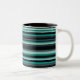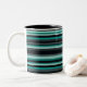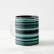 La tasse de café est affichée en noir et turquoise imprimé à rayures. Customisez cet article ou choisissez un autre style de mug ou achetez tel quel.