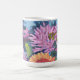 Peinture de style impressionniste brillante et vibrante, arrangement floral capté sur une tasse de café