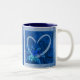 Tasse à café avec un coeur bleu et design de fleurs bleues.