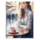 GIRL AT CAFE IN PARIS,NOTEBOOK FOR REPORTING.