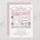 Invitation vos invités à une célébration enchanteresse avec cette invitation au café parisien ! Doté d'une charmante aquarelle illustrant une vitrine de boulangerie française vintage, de fleurs roses douces, de pâtisseries délicates dans la fenêtre et d'un cadre cosy de table de café, ce design est parfait pour créer un événement mémorable et élégant.