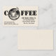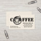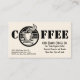Ce carte de visite contagieux d'oeil comporte une image graphique noire et blanche saisissante et simple de clipart montrant une main tenant une soucoupe et une tasse de café chaud et fraîchement préparé avec un remous de vapeur. Les amants de café et les propriétaires de magasin de même apprécieront de cette façon unique d'annoncer les services de barman, les café-restaurants, les producteurs de grain de café, les organisations commerciales de commerce équitable etc.