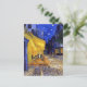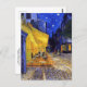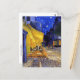A fine art postcard with the post-impressionist painting by Vincent van Gogh (1853-1890), Café Terrace at Night (1888), painted in Arles, France on a busy city street of shops with an outdoor restaurant under the stars.