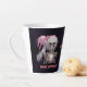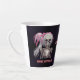 Featuring a sassy skeleton with white hair and a pink ribbon on one side, sipping on a latte, and the words "Before caffeine fix..." On the other side, transform into a regal queen with a crown, and the phrase "Now I'm perk-fectly wired!"
