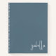Ce cahier minimaliste moderne présente votre nom dans une calligraphie manuscrite blanche sur un fond bleu poussiéreux. La typographie est placée de manière élégante dans le coin inférieur droit. Parfait pour le bureau, la résidence universitaire, la rentrée scolaire ou les affaires.