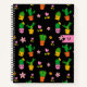 Cahier à spirales noir monogrammé Kawaii Cactus