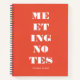 Écrivez tout avec ce cahier moderne de couleur orange rougeâtre présentant la phrase "Notes de réunion".