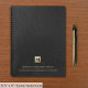 Améliorez votre présence professionnelle avec notre cahier à spirale à initiale dorée en cuir noir luxe. Mettant en valeur un monogramme initial doré accompagné de votre nom de société et d'informations dans une typographie dorée intemporelle, le tout sur un fond élégant en impression de cuir noir. Ce cahier combine avec élégance le style et la fonctionnalité, ce qui en fait un choix idéal pour les consultants et les cabinets de conseil. Capturez vos pensées, vos idées et vos plans avec élégance tout en reflétant votre engagement envers l'excellence. Élevez votre expérience de prise de notes avec ce cahier raffiné, un outil essentiel qui allie sophistication et praticité.